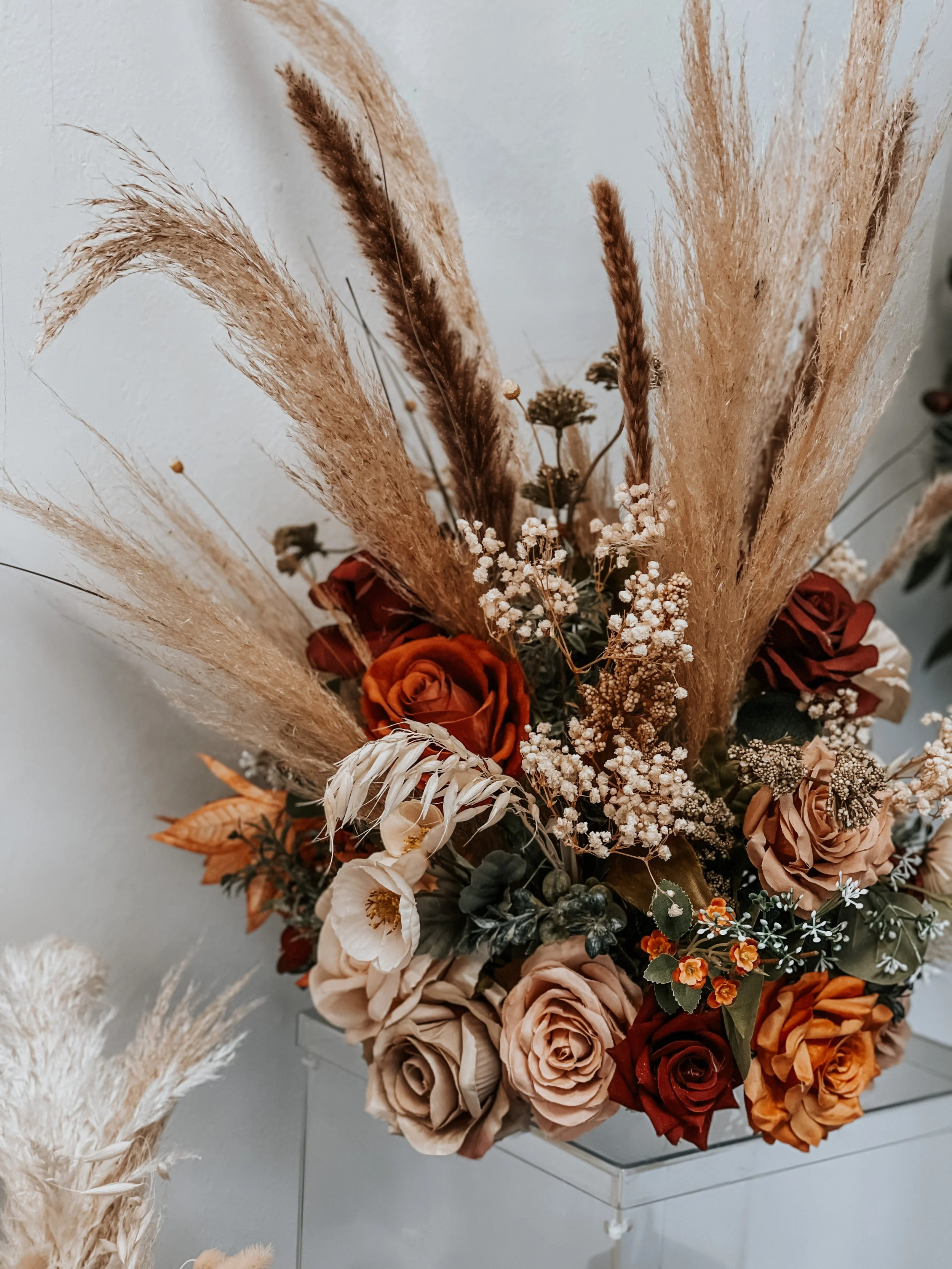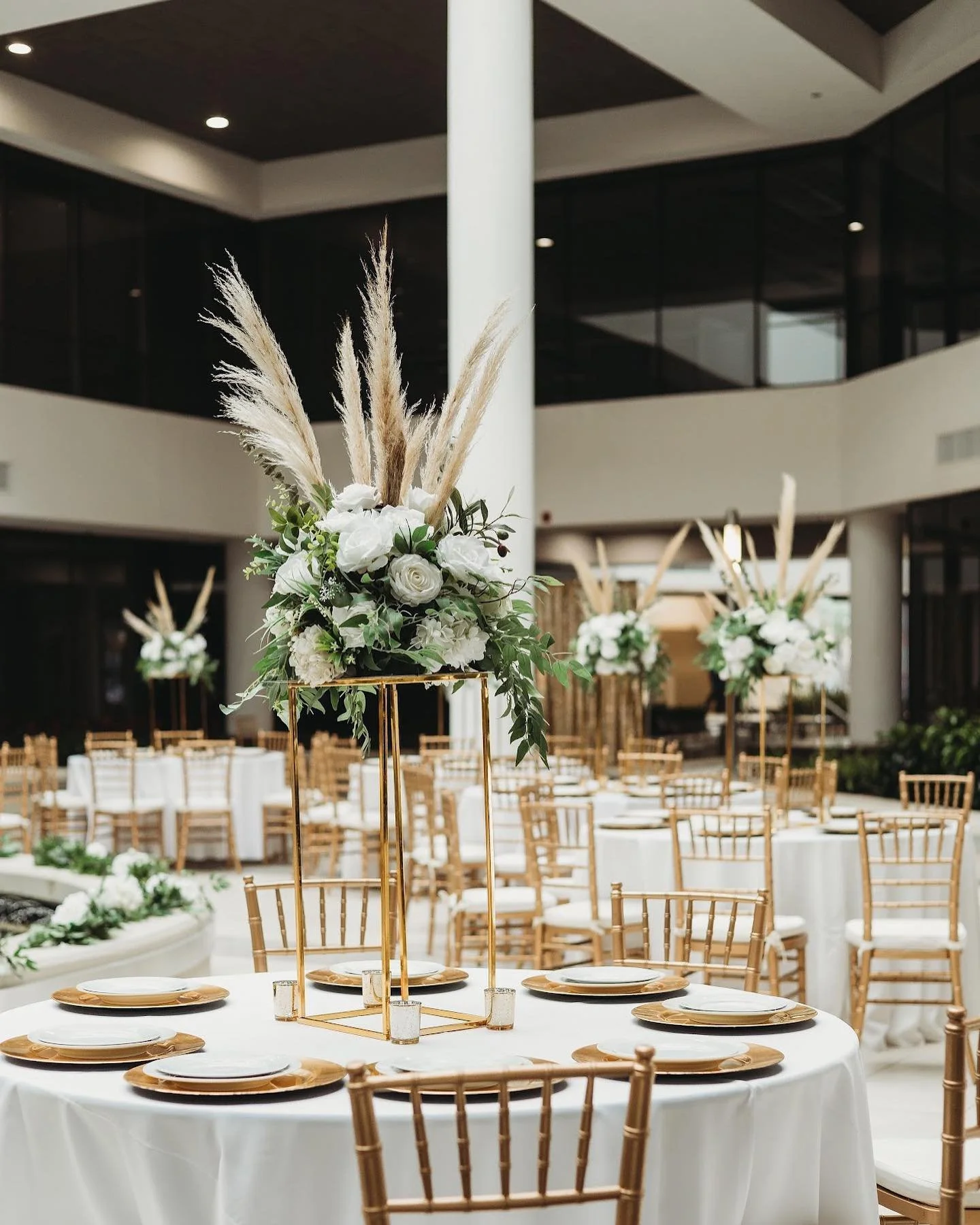 Geometric Stand Modern pampas Centerpiece for fall wedding.
