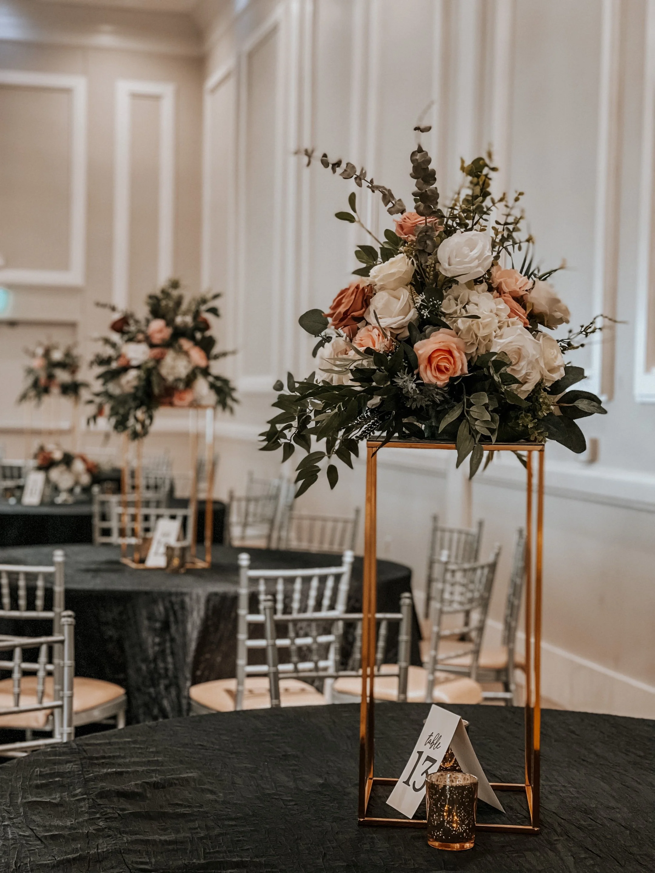 Theme: Geometric Gold stand Centerpiece Blush and white
